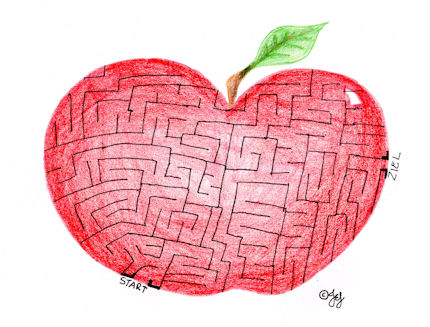 Du nimmst den zweiten unversehrten Apfel und erklärst, daß auch dieser ein Loch durch die Mitte habe, nur eben ein unsichtbares, virtuelles Loch.
