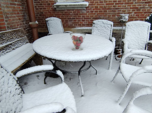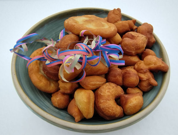 Mit Fasnetsküchle feiern wir Rosenmontag im Neuschnee.