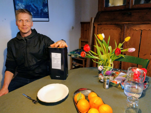 Jonas schneit kurz rein und bringt uns das neue leckere Olivenöl aus Sizilien.