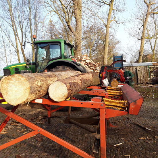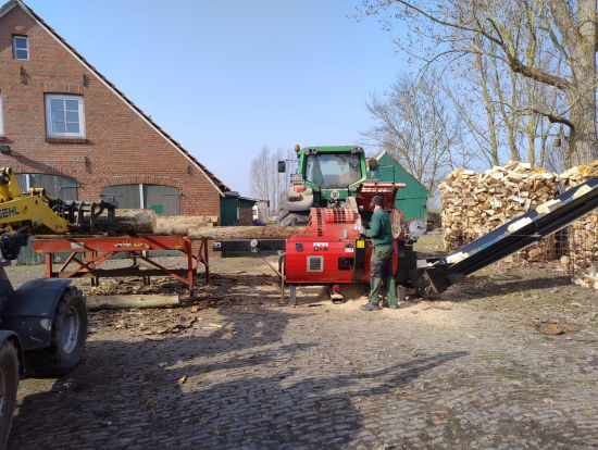 Endlich hat es geklappt und unser Holz wird gespalten.