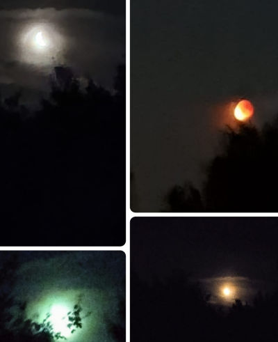 Mondfinsternis und Blutmond und schöner Sonnenuntergang