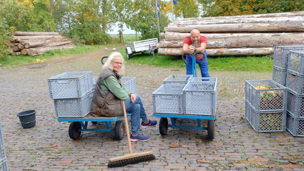 waren wir 14 Stunden beschäftigt und haben Äpfel gezählt und den leeren Hofplatz ohne Äpfel herbei gewünscht.