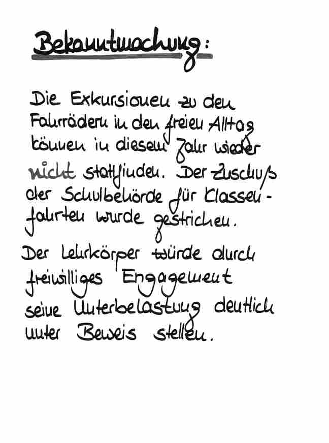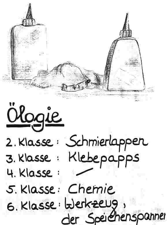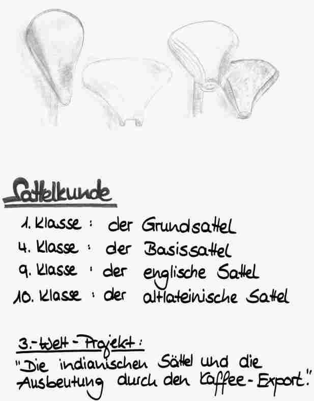 Die Schule hat auch Unterrichtsfächer, und so wie ihr alle das kennt einen Vormittag mit sechs Stunden und einigen Pausen, mit einem Schulhaus (mit einem Fahrradständer davor) und viele Lehrer, die manchmal nett sind.