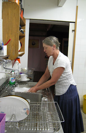 Morgens haben wir den großen Backofen angeheizt und sehr viel Brotteig geknetet,