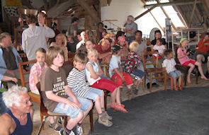 Zuvor wurde das Stück "Das verwaiste Kind" von Mo Bunte und Anna Katharina Kaufmann aufgeführt. Außerdem hatte Kristina Feix die Jungen und Mädchen eingeladen, sich ihr Puppenspiel "Die drei Erdbeeren im Schnee" anzusehen.