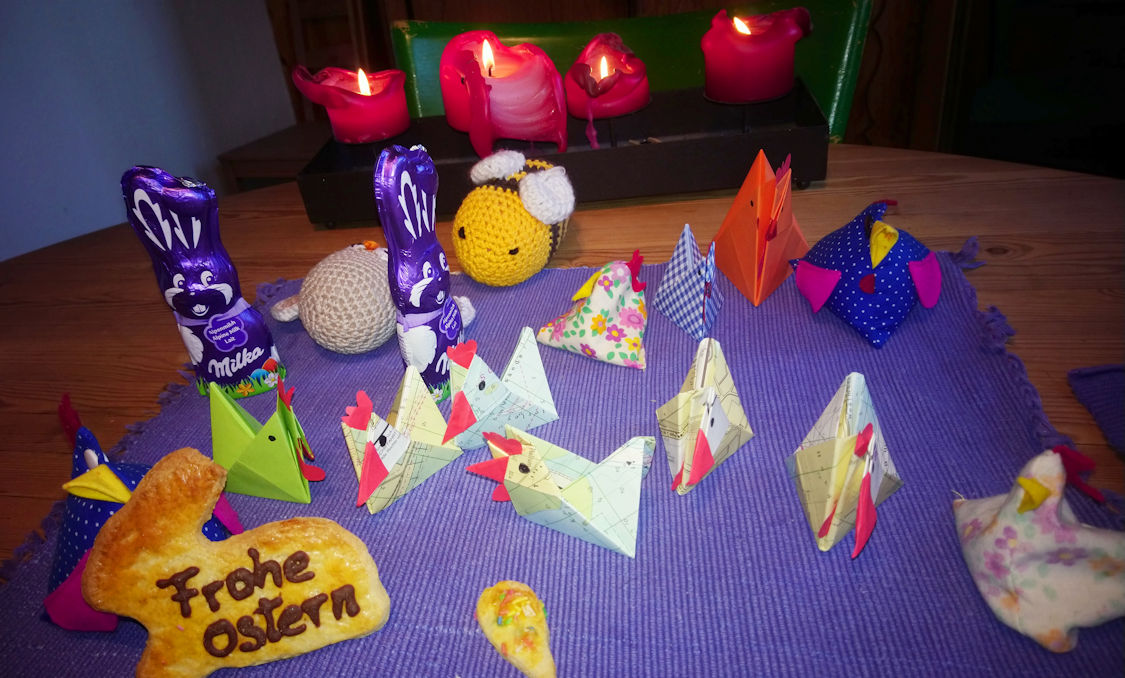 Wir freuen uns an den paar farbigen Abwechslungen draussen.