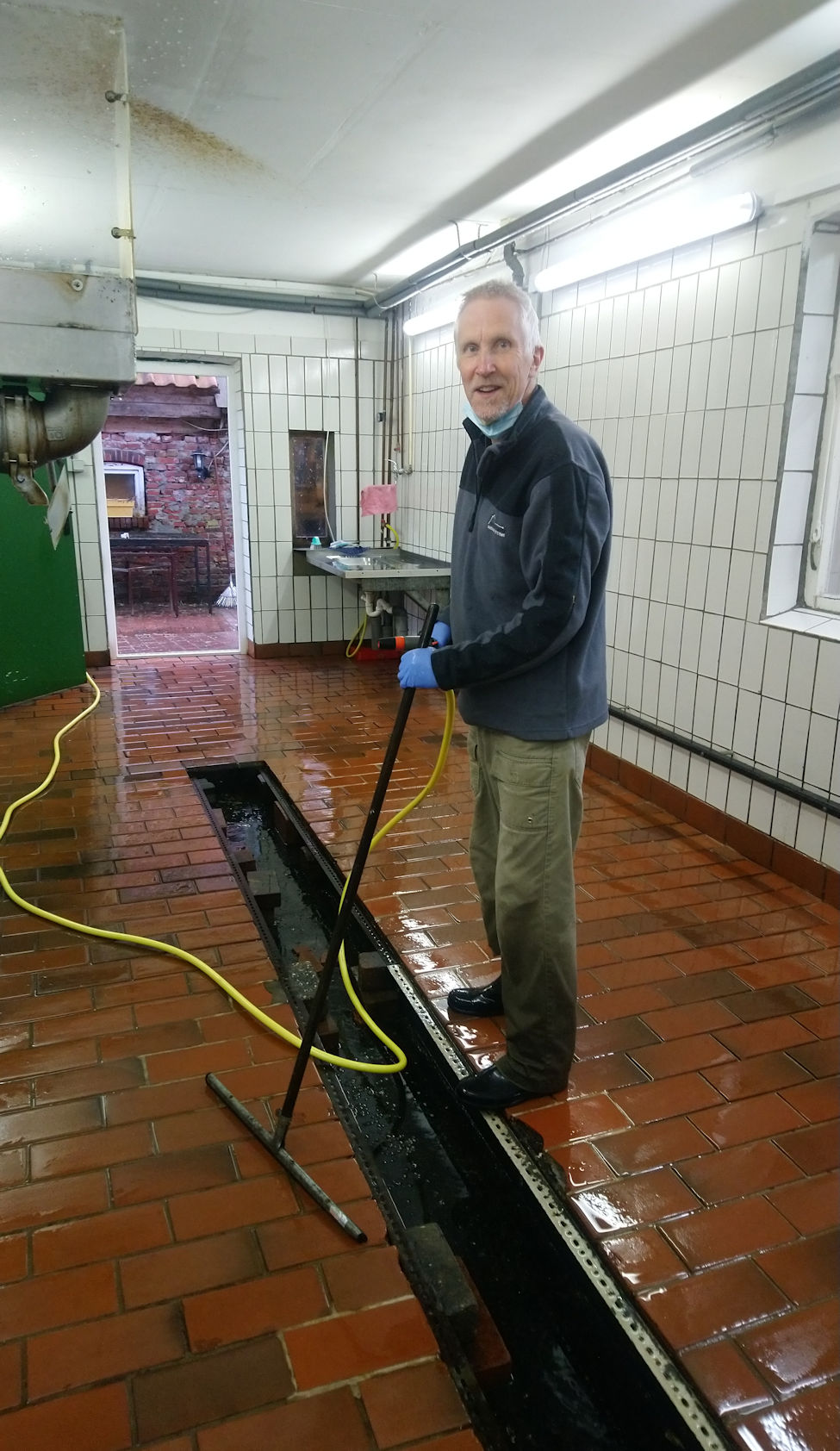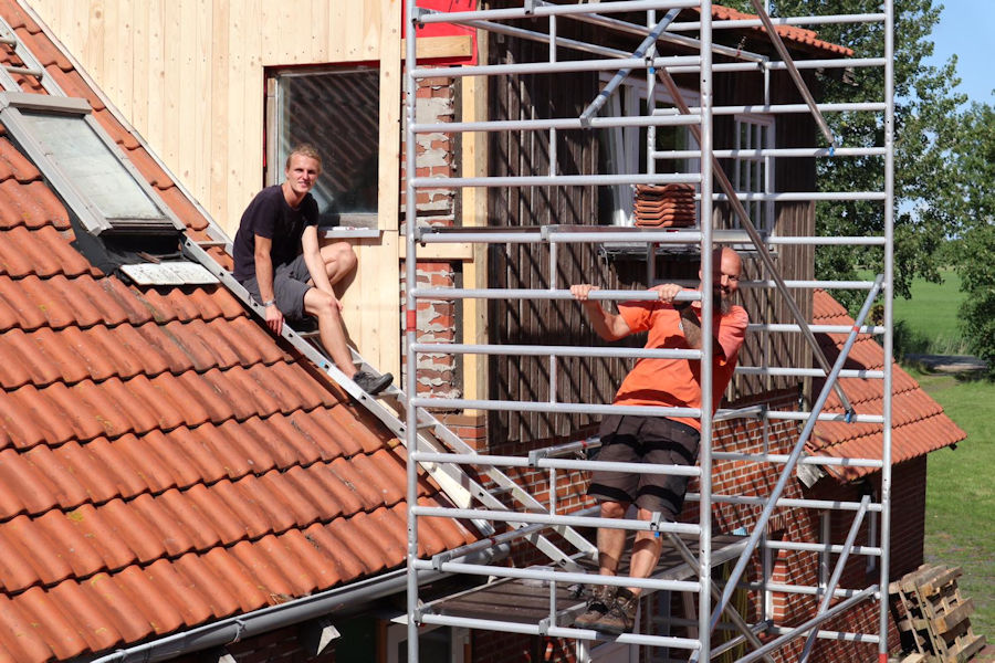 Hand in Hand und bei Problemen helfen Kraft und schnelle Ideen (bei der grossen Presse ist das Verbindungsteil zum Wasserschlauch abgefallen).