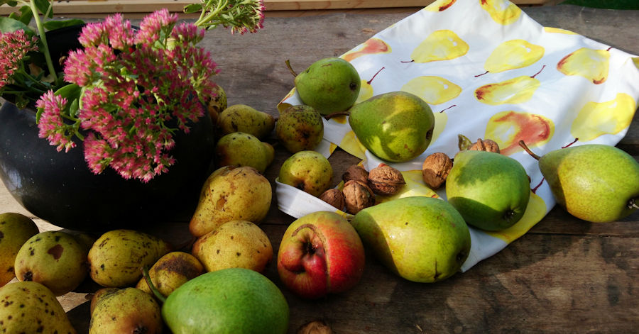 Zum Beispiel das Apfelmenüe mit Äpfeln in gewöhnlichen und ungewöhnlichen Kochweisen.