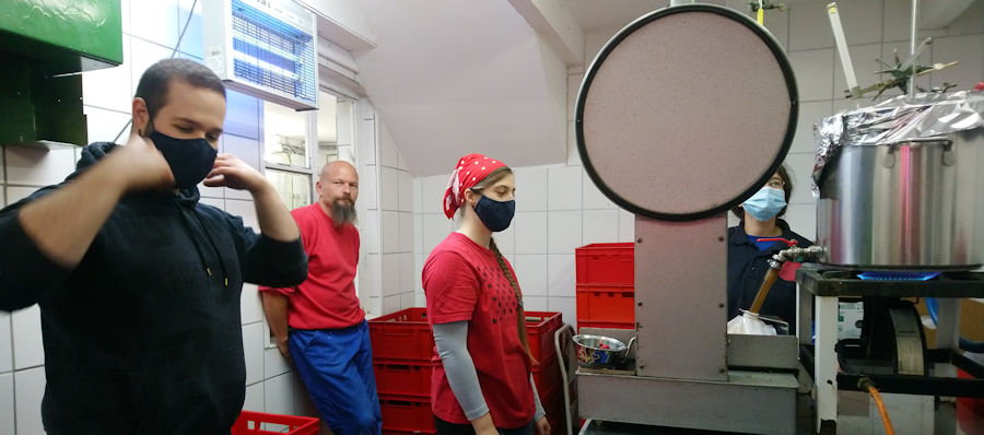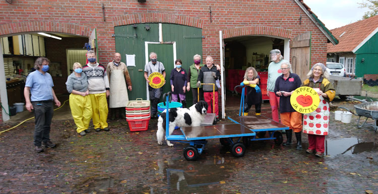 Ralf, Oli, Fezi, Georg, Moses, Conny, Udo, Mark, und die Hausgruppe (Bär, Martina, Annette, Manlio, Mathi und Wolfgang) haben viele, viele Äpfel zu Saft verarbeitet.