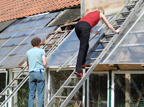 Lena und Wolfgang basteln noch am Balkongärtchen für