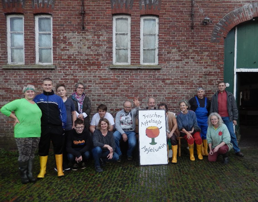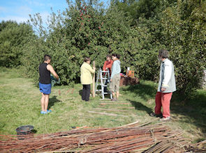 Mit 8-10 Personen können wir nun sitzen uns über Apfelbäume