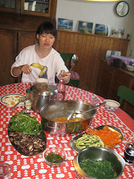 Sie kocht lecker Melonensuppeu und Zucchini-Bananen-Reis.