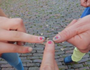 flechtet Zöpfe und bemalt die Fingernägel mit Äpfeln oder