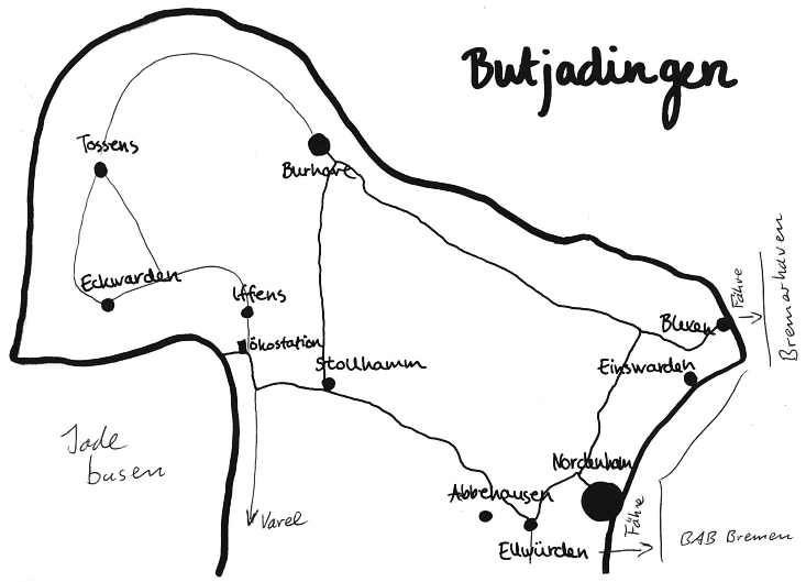 -Auch viele neuzeitliche Gefährdungen der Umwelt sind auf engem Raum vorzufinden. Dazu gehören Schwermetalle, Asbest und Atomkraft im Osten, Öl, Schwefeldioxid, Vinylchlorid usw im Westen Butjadingens. Intensiv-Viehhaltung und Fremdenverkehr bringen auch Butjadingen Probleme.