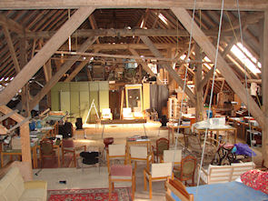 Dat is een van de vele doe-dingen waar zowel kinderen als volwassenen zich uitstekend mee kunnen vermaken. Eigenhandig ontworpen en gemaakt door Wolfgang. Maar eerst dwaal je door de boerderij om te zien wat er allemaal is. En al slenterend vraag je je af wat er eigenlijk niet is. Het schaakspel is gemaakt van zee-dieren en de toiletbril is in de vorm van het schiereiland Butjadingen gezaagd. Waar herken ik dat van? O ja, van de 'europese' vlag in de voortuin, waarvan de twaalf sterren zijn vervangen door twaalf schiereilandjes. Het witboek van Baerbel vertelt hoe wit alles werd in de afgelopen decennia, en hoe ontzettend jammer dat is, omdat daarmee alle kleur uit het leven verdween. Op de giga-zolder is een bioscoop ingericht waar je na het avondeten een dvd kunt kijken. En er is een bed. Dat staat er niet, maar het hangt er, net boven de grond, aan 10 meter lange touwen, zwevend door de ruimte... oh dat bed... wat een geweldige plek om te mijmeren, of te kletsen, of te lezen, of... ja natuurlijk...
