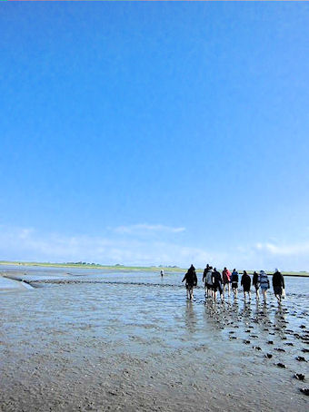 Las aguas bajas del Mar del Norte son muy interesantes. Durante la marea baja el mar se aleja tanto que se puede caminar durante horas, es muy divertido caminar por el barro y algo fascinante ver como el mar vuelve de repente muy rápidamente. El "Wattenmeer", único y grandioso por su condición de vida, es todo un ecosistema y por ello tema preferido para excursiones de colegiales, estudiantes..., se trata del único terreno pantanoso (turba) de Europa, cuya área sobrenada cuando la marea es muy alta.